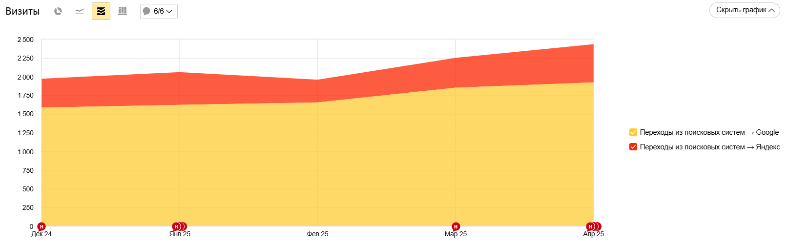 Цель: продвинуть сайт по основным коммерческим запросам (более 500 шт. на данный момент) в ТОП 10 Google и Яндекс и удержать на этих позициях