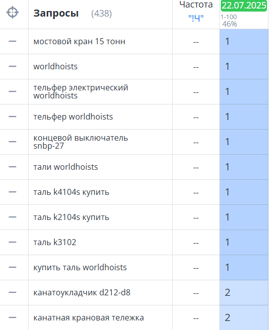 Продвижение сайта производителя оборудования Worldhoists